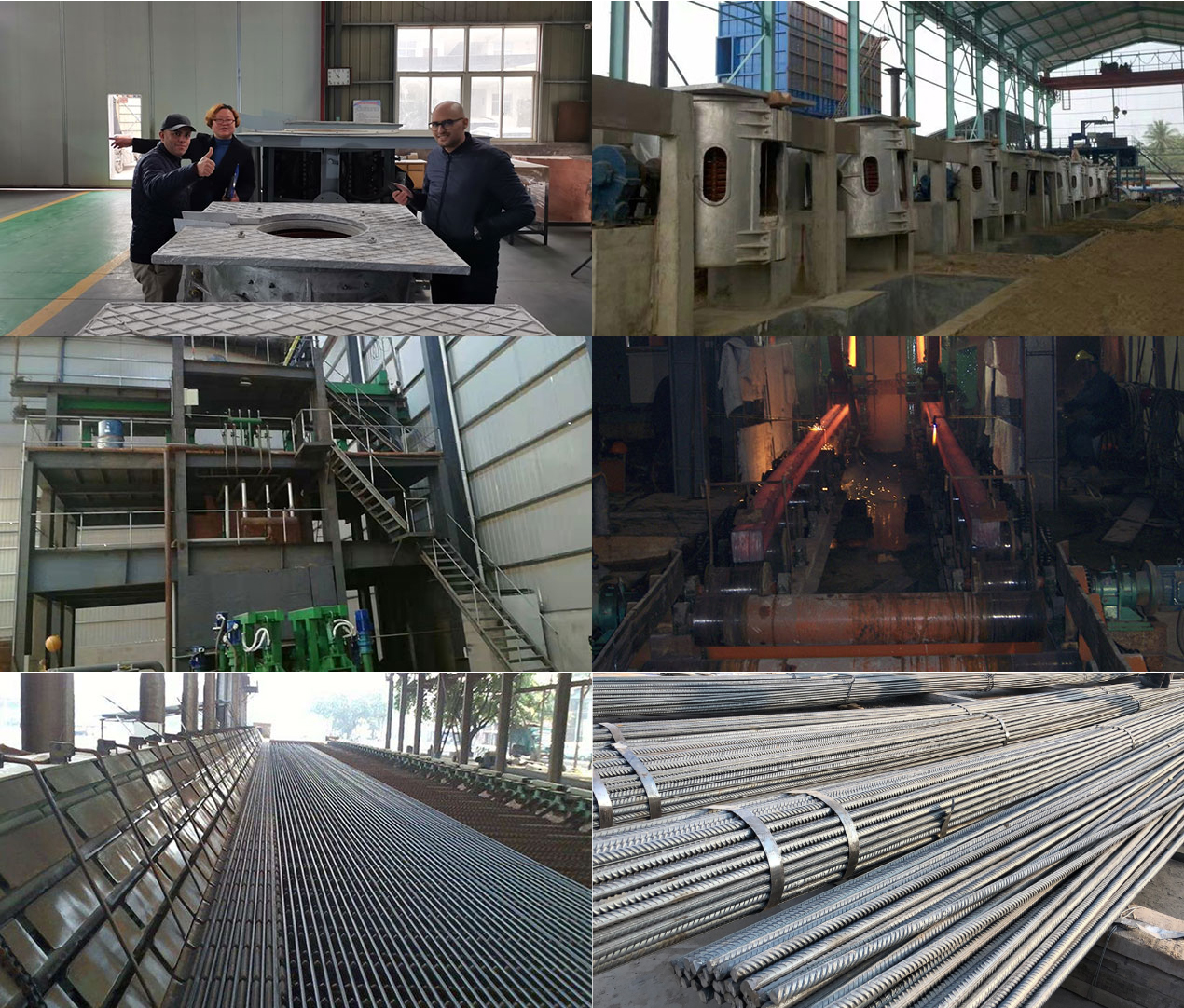 生產(chǎn)線組件:感應(yīng)熔煉爐; 冷卻機(jī); 連鑄機(jī); 連軋機(jī)??