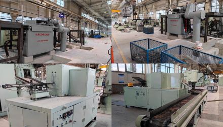 生產(chǎn)線組件:感應熔煉爐; 鋁合金壓鑄設備; 感應加熱爐; 鋁合金鍛造設備; 冷卻機; 集塵器;?