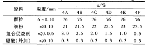 合理的顆粒級配可以提高搗打料的抗熱震性能及抗化學(xué)侵蝕性能,也能改善施工后中頻爐工作襯的燒結(jié)質(zhì)量。以文獻(xiàn)[5]為依據(jù),對顆粒級配進(jìn)行微調(diào)整,研究顆粒級配對干式料性能的影響,具體配比見表2;然后,以優(yōu)選出4配方的粒度級配為基礎(chǔ),改變復(fù)合高溫促燒劑的加入量(等量取代細(xì)粉質(zhì)量),研究促燒劑對于式搗打料性能的影響,其具體配比見表3。
