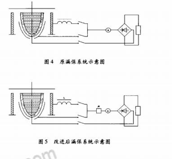 冶金機(jī)械有限公司投資兩千多萬元打造的一條具有國內(nèi)先進(jìn)水平的軋輥生產(chǎn)線,其主體設(shè)備是3T、10T中頻電爐,整個(gè)熔煉過程采用全程控制圖形化操作界面。在運(yùn)行過程中發(fā)現(xiàn)電爐在使用一定爐次以后,由于爐襯膨脹、疏松,鐵水極易穿透爐襯。為確保生產(chǎn)正常運(yùn)行,提高爐體的使用壽命。對爐體提出改進(jìn)設(shè)想并對其進(jìn)行可行性分析,通過應(yīng)用對漏保系統(tǒng)采取改進(jìn)措施。