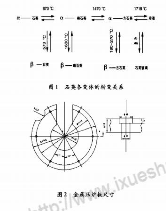 目前國內(nèi)中頻爐用于熔煉鑄鐵的普通爐襯材料使用的是SiO:石英砂。自然界的石英是低溫型的。開始加熱時(shí),石英砂隨溫度升高而均勻膨脹。在573~C時(shí)發(fā)生同質(zhì)異晶轉(zhuǎn)變,低溫石英轉(zhuǎn)變成高溫目前國內(nèi)中頻電爐用于熔煉鑄鐵的普通爐襯材料使用的是SiO:石英砂。石英后因晶體轉(zhuǎn)變而突然膨脹(這個(gè)轉(zhuǎn)變是可逆的)。高溫石英砂在870~C以上和有溶劑存在的條件下會轉(zhuǎn)變成磷石英,但轉(zhuǎn)變速度很慢。升高溫度可加快轉(zhuǎn)變,但即使在1250—1350℃高溫下亦需1小時(shí)左右才能完成。此時(shí)體積增大1.6倍,磷石英在1470℃以上變成方石英。方石英在1713℃以上融化,冷卻后變成石英玻璃,如圖1所示。